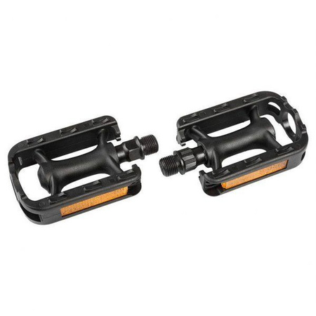 Dziecięce pedały rowerowe Kross RADIX zostały wykonane z tworzywa sztucznego oraz stalowej osi. Pedały posiadają wbudowane odblaski dla poprawy bezpieczeństwa.