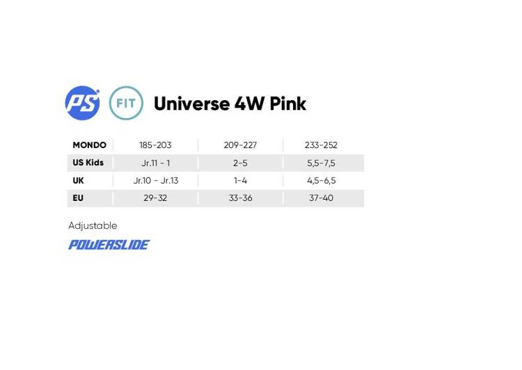 Rolki Powerslide PHUZION UNIVERSE to najlepszy wybór dla dzieciaków, które rozpoczynają naukę na rolkach jak również dla tych, które jeżdżą rekreacyjnie. Połączenia komfortu, dobrego trzymania nogi, oraz bezpieczeństwa. Możliwość łatwej i szybkiej zmiany rozmiaru, dzięki temu rolki "rosną" razem z dzieckiem.
