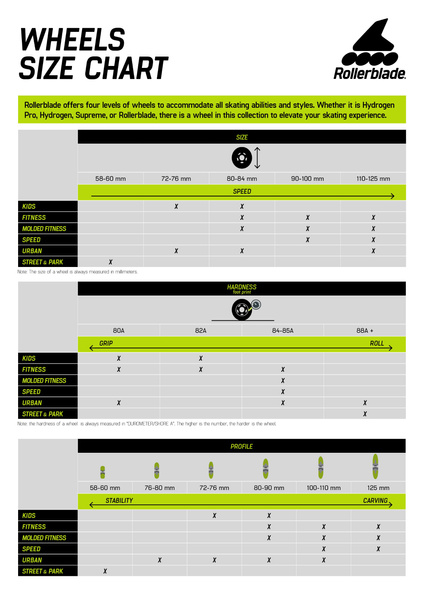 Koła Rollerblade Hydrogen to koła o rewelacyjnych parametrach! Bezkompromisowa przyczepność, sprężystość, przy zachowaniu na bardzo wysokim poziomie takich właściwości jak zwrotność i szybkość.